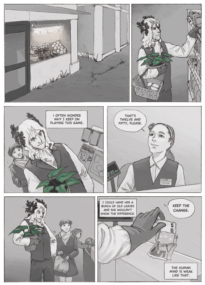 My first comic to see print, Sulan ja Raudan huone follows the story of a young poet from a modest family traveling with a degenerate aristocrate seeking to regain his lost fortune. The story was fairly straightforward tragic romance, but the feedback we got for it was overall very positive and the reception was good.